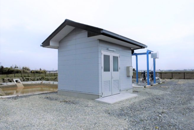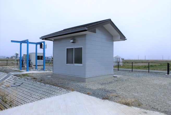 東松島市内の二ヵ所で揚水機場管理棟を新築で施工させて頂きました。当社として初めての宮城県発注工事となりました。構造は鉄骨造で木造を得意としてきた当社にとっては初めての試みとなりました。見た目は小さなポンプ小屋ですが、非常に勉強する事が多い現場となりました。