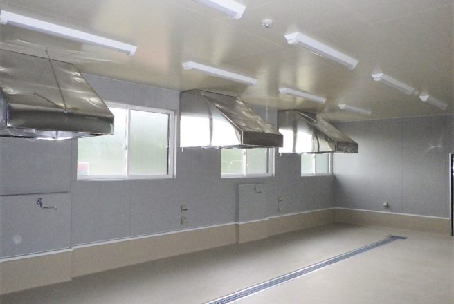 (株)東松島長寿味噌 製造室 新築工事を施工させて頂きました。味噌の製造室とゆう事で、大きな換気設備を設置させて頂きました。地元名産の長寿味噌さんのおいしい味噌の製造に少しでも関われて誇らしい気持ちです!