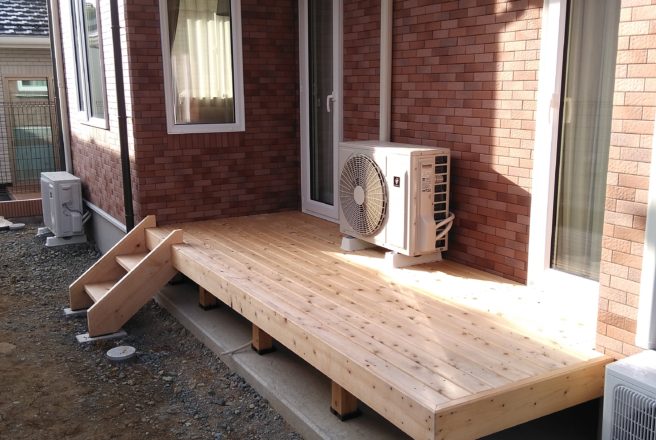 多賀城市 T様邸を施工させて頂きました。外壁は全てタイル仕上げとなっています。長期にわたってメンテナンスが不要で、耐久性が強い事が特徴です。ウッドデッキは桧材で施工させて頂きました。桧は浴槽に使われるほど耐水性の強い材料です。他の木材と比べ耐久性が強いのが特徴です。