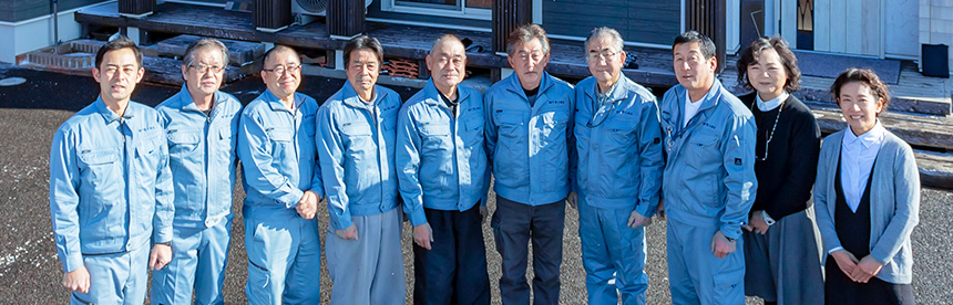 当社は昭和8年の創業時から地域の工務店としてお客様と歩みを進めて来ました。困ったときに頼りになる。気軽に相談できる。そんな工務店を目指して。設計から完成、アフターフォローまで変わらない顔ぶれで対応致します。