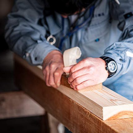 当社は代々、大工職人のプロ集団として仕事を積み重ねてきました。磨かれた技術と心を持った職人が現場で腕を振るっています。