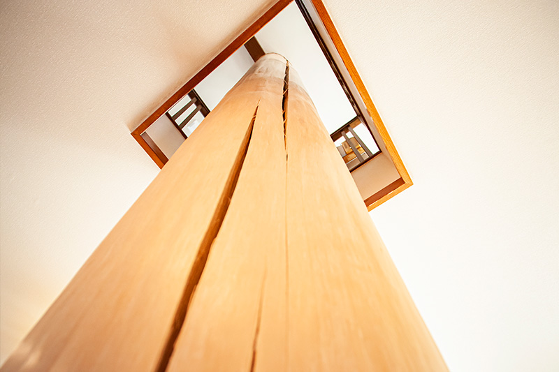 太陽光発電、薪ストーブ、樹齢84年の一本柱(杉)、室内壁エコナウォール、システムキッチン、1階トイレ・アラウーノ、外壁(サイディング)、無垢フロア 各種建材フロア、SECOM防犯システム