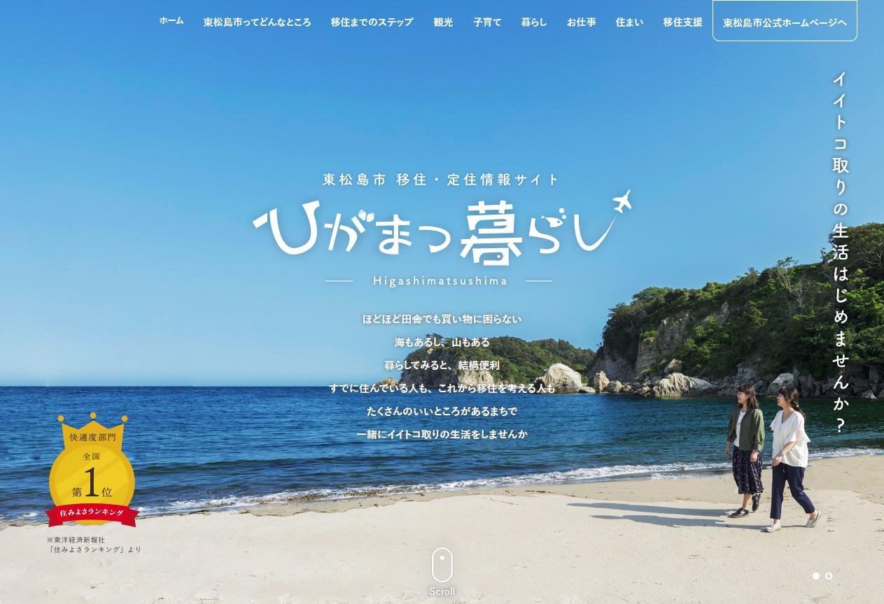 東松島市がどんな街か、移住までに必要なステップや暮らしに関する様々な情報が掲載されている東松島市の公式サイトです。移住をお考えの方はこちらもぜひご覧ください。